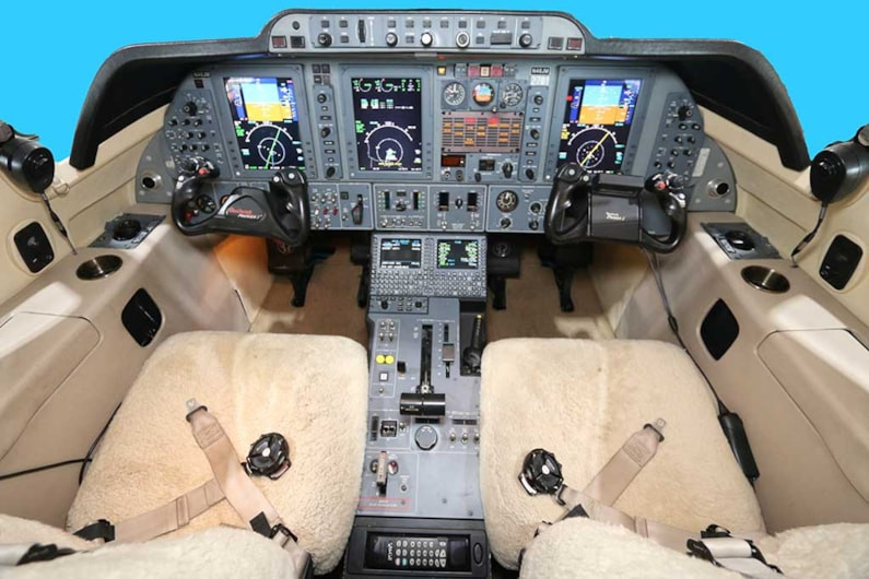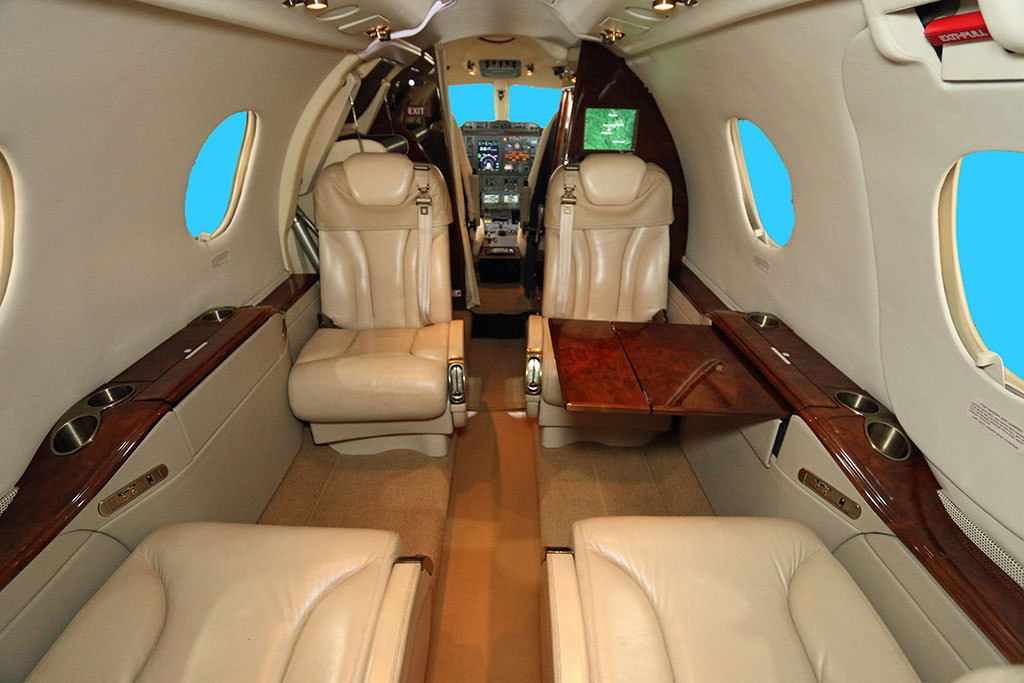 Interior DetailsSix Passenger seats configured in a forward, four-place club arrangement with two executive tables and two aft forward-facing seats. Non-belted lavatory, forward right-hand galley. Moving map cabin display with DVD player, 115 VAC outlets, heated coffee dispenser.AvionicsCollins Pro-Line 21 Three Tube EFIS on CASP with Single Collins FMC-3000 FMS, Dual Collins AHC-3000 AHRS, Dual Collins FGC-3000 Flight Directors and Electronic Chartview.ADF: Collins NAV-4000Autopilot: Collins FGC-3000Comm Radios: Dual Collins VHF-4000 w/ 8.33 spacingCVR: L3 FA2100 SSCVRDME: Collins DME-4000EGPWS: Honeywell EGPWSELT: Artex-110 ELTGPS: Collins GPS-4000SNavigation Radios: Dual Collins NAV-4000 / 4500 NAVSRadar Altimeter: Collins ALT-4000Standby Comm: Collins CTL-23 NAV / COMTCAS: Collins TTR-4000Transponder: Dual Collins TDR-94D Transponders (ADS-B Out)Weather Radar: Collins RTA-800 Color RadarFeatures/OptionsCrew sheepskin covers, cabin temp controller in cabin, recent windshields and cockpit side windows, three 115VAC outlets, crew oxygen mask smoke goggles.